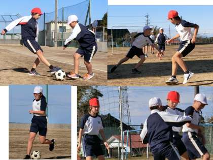 ボールゲームでは、パスをつないでゴールを目指し、みんなで楽しく体を動かしました。