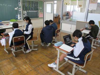 5年生は国語科において、神通碧小学校と交流学習を進めています。今週は意見作文を紹介し合うことになっており、そのためのプレゼン資料を作成しています。自分の主張が相手に分かってもらえるように、グラフを貼り付けたり、文章を見直したりしています。端末操作にも慣れてきましたが、友達や先生にも相談しながらよりよくなるよう工夫しています。