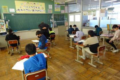 教科書の説明や問題文をじっくりと読んだり、悩んだときには先生や友達に尋ねたりしながら解き方を考えています。それぞれが自分の納得のいくまで考え、力を伸ばそうとかんばっています。