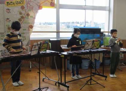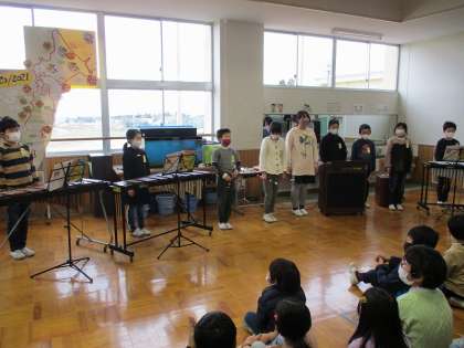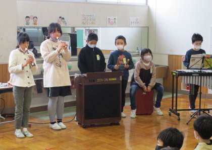 4年生が、これまで音楽科の時間に学習してきた成果を発表し、全校の仲間に笑顔になってもらおうと、「4年生スマイルコンサート」を開きました。本番前は緊張した様子でしたが、一生懸命に演奏に取り組み、発表後には大きな拍手とアンコールまでいただきました。仲間と音楽を合わせる楽しさや、協力して一つのことをやり遂げた達成感を味わうことができました。
