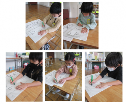 書写の学習では、書き初めの練習に取り組んでいます。子供たちは「鉛筆で書くよりも難しい」と、硬筆墨を持つ手を震わせながら書いていましたが、「かるた」という3つの文字を心を込めて丁寧に書くことができました。