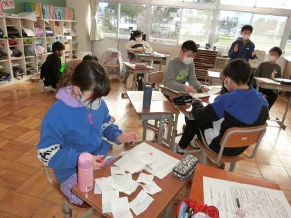 班で協力して活動する楽しさを味わい、「3学期もがんばるぞ!」という気持ちを高めるような、活気あふれる集会にしようと準備を進めています。