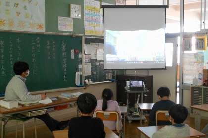 大沢野図書館学校訪問 公開日 2022/02/28 更新日 2022/02/28 学校行事 大沢野図書館より職員の方が2名来校され、1、2、3年生を対象にオンラインで本の紹介や読み聞かせをしてくださいました。画面越しに真剣に耳を傾けていた子供たち。図書館や読書への関心が高まりました。