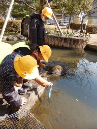 雪が解け始め、春らしい陽差しを感じるこの頃です。下校時に子供たちが「冬眠していた鯉たちは、元気かな」と池をのぞき込む様子が見られます。