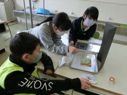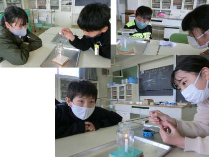 6年生は、理科の学習でろうそくの火を燃やし続ける方法を調べる実験をしました。