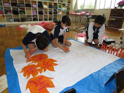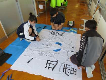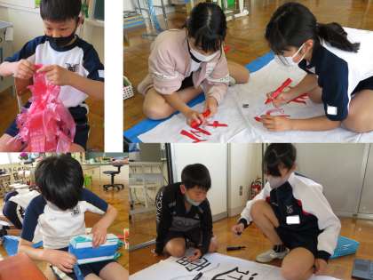 6年生は、運動会に向けて応援旗をつくり始めました。