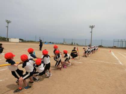 応援合戦やつな引きでは、みんなの心や力を合わせてがんばる子供たちの姿が見られました。