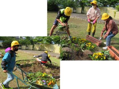 6年生は、朝の活動の時間に花壇の整備をしました。