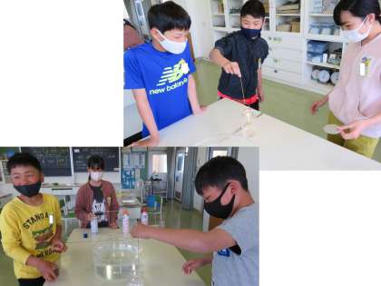 理科の学習では、物を燃やすはたらきのある気体について調べる実験をしました。