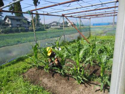 2年生は、自分たちが育てている野菜のお世話と畑の草むしりをしました。暑い中でしたが、一生懸命除草をした畑をみると大変きれいになっていました。子供たちのがんばりに応えて、野菜たちももっと成長していってほしいです。