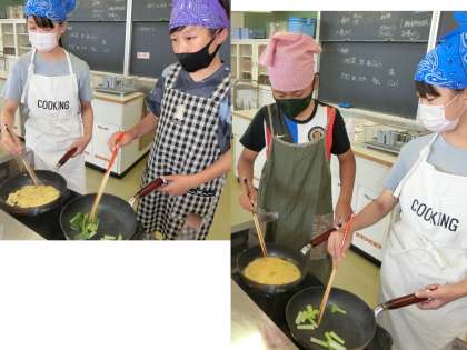 6年生、今回の調理実習では、栄養のバランスを考えた朝食のおかずづくりに挑戦しました。