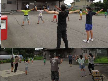 6年生が前に出てお手本となり、地域の方々と一緒に元気に体操している姿がありました。