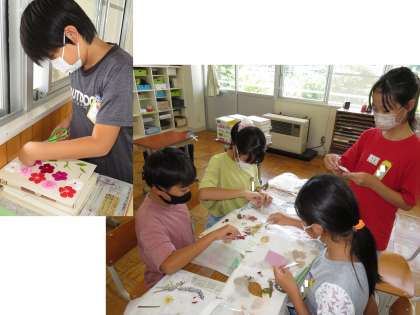 6年生の教室では、先週の全校登校日につくった押し花でしおりをつくってみました。
