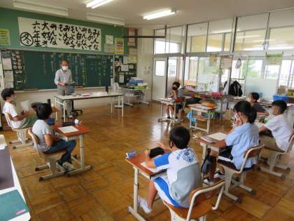 地域の方を講師に招いて、俳句の学習に取り組む6年生。