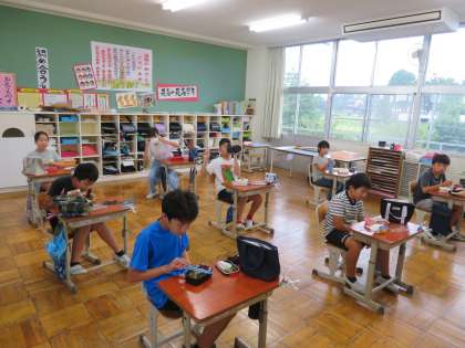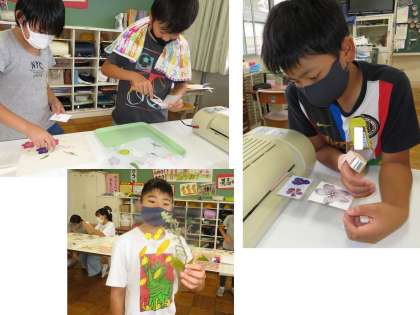 押し花のしおりづくりも3回目となり、技に磨きがかかる6年生です。