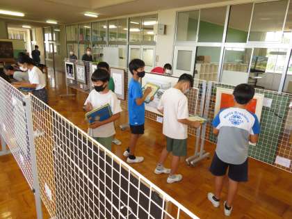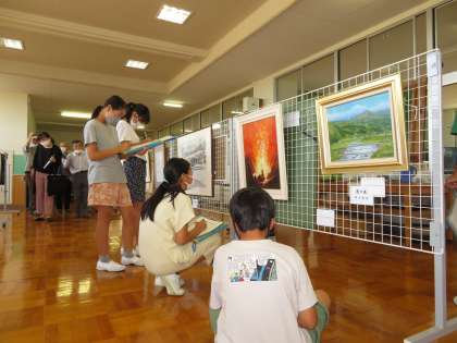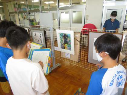 絵画、書、写真、版画といろいろな作品が展示される中、6年生は作品鑑賞会を行いました。