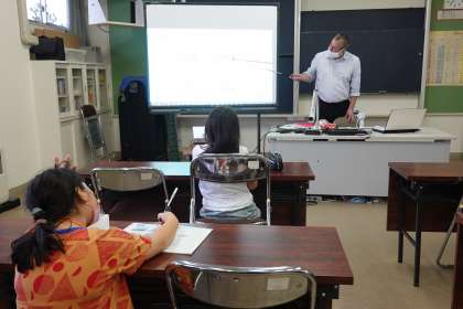 5年生は、できること・できないことを話す学習をしています。職業や得意なことを入れて、身近な人を紹介する練習をしています。