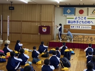 入所式を行いました。霧?がはれて視界が広がり、富山市内が一望することができます。所の方からこの風景も楽しんでくださいというお話がありました。夜景が楽しみです。