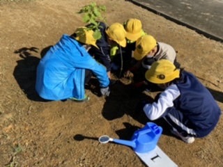 コナラ、サクラ、ミズナラの苗木を各班で担当して植樹しました。