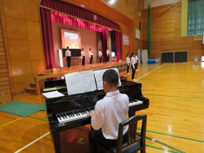 学習発表会に向けて、自分たちで見付けた課題を修正しながら発表練習に取り組む6年生。
