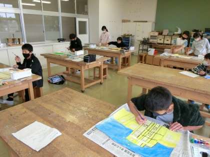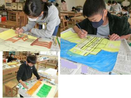 6年間の思い出がたくさん詰まった校舎の絵を描いている6年生です。