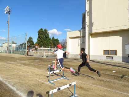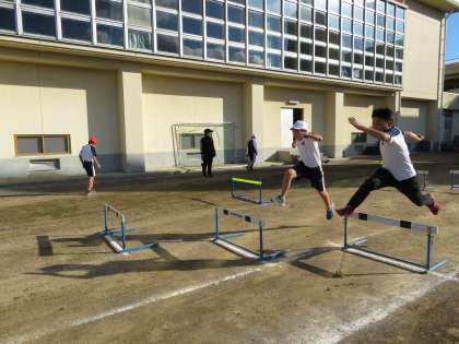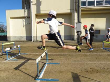 4〜6年生は体育の学習でハードル走に取り組んでいます。