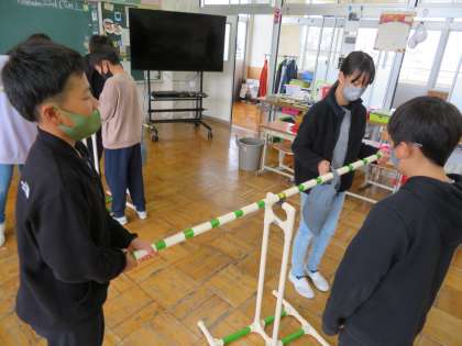 どのようにすれば、小さい力で重い物を持ち上げることができるか、実際にみんなで試しながら学習を進めました。