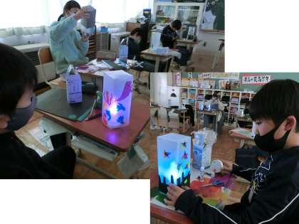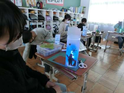 先週からすてきな光を感じるランプシェードづくりに取り組んでいる6年生。