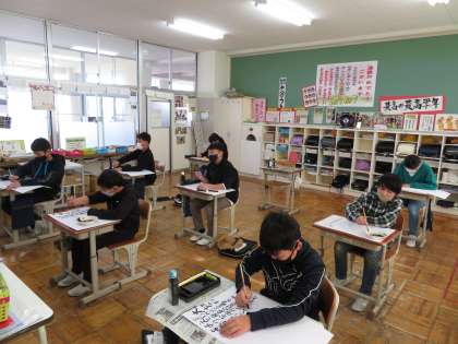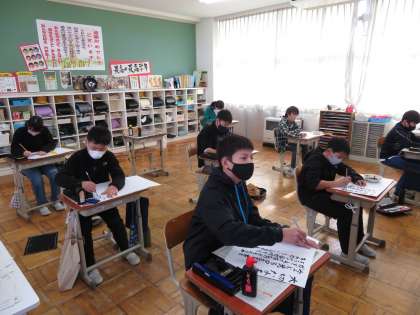 6年生は、3月の卒業式に歌う曲の世界を味わうために、歌詞を画用紙に書き表してみました。