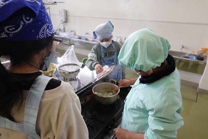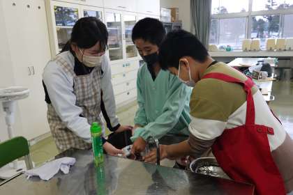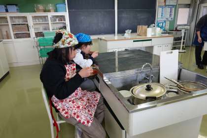 おいしい味噌汁を作ろう!(5年生) 公開日 2023/01/18 更新日 2023/01/18 3・4年生 5年生は家庭科の学習で、味噌汁を作りました。出汁や味噌のよいにおいが家庭科室に広がりました。おいしい味噌汁が出来上がり、みんな完食していました。