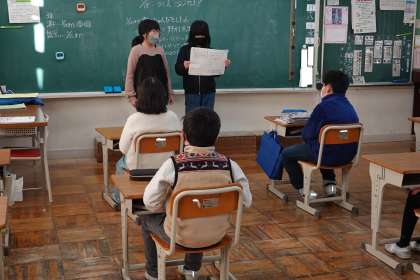 今日は、卒業式や卒業おめでとう集会で全校の思いを届けるために、下学年にアンケートを依頼しに行きました。