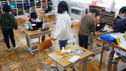 今、クラス全員でとある物を制作しています。画用紙や折り紙等、様々な物を使って工作したり、メッセージを書いたりしています。