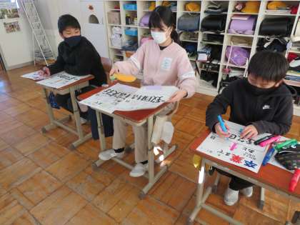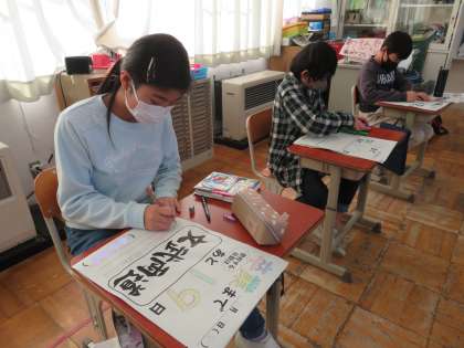 6年教室では、卒業までのカウントダウンカレンダーを明日より掲示し始めます。子どもたちは、思いを込めた四字熟語をカレンダーに書き込み、1枚ずつ仕上げています。
