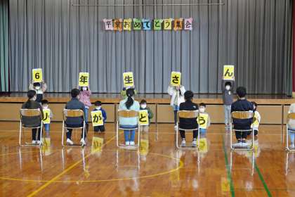 今日は、5年生を中心に、6年生の卒業をお祝いしました。1年生は感謝の気持ちを歌にのせて届けました。2・3年生は校舎の写真を使って、クイズで盛り上げました。