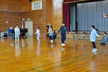 卒業おめでとう集会4 公開日 2023/03/01 更新日 2023/03/01 学校行事 最後に、6年生からのお返しで「6年生にチャレンジ」タイムがありました。縄跳びやフラフープ、的当てなど、6年生との対戦に、盛り上がりました。