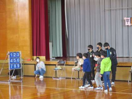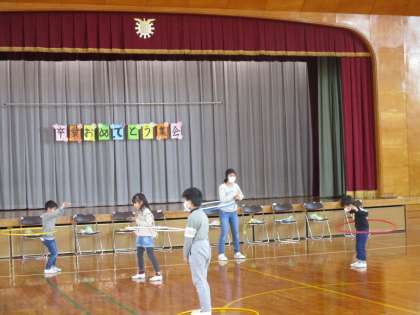 最後に、6年生からのお返しで「6年生にチャレンジ」タイムがありました。縄跳びやフラフープ、的当てなど、6年生との対戦に、盛り上がりました。