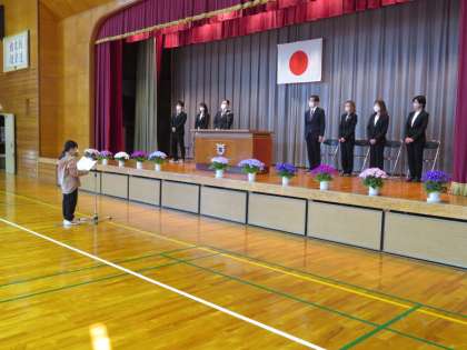 5年生の代表がお別れの言葉を伝え、感謝の気持ちを込めて花束をお渡ししました。
