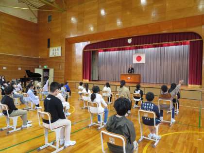 校長先生の話に手を挙げて答えようとする子ども、背筋をぴんとのばして聞く子ども。素敵なふなくらっ子の姿がたくさん見られました。