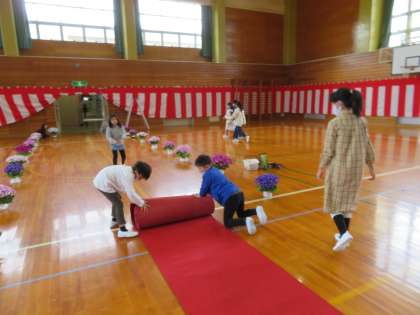 明日の入学式に向けて、2〜6年生みんなで準備をしました。明日、元気に1年生が入学することを楽しみにしている子どもたちです。