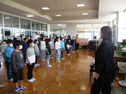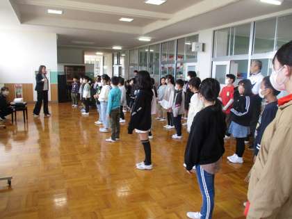 4月11日(火) 船っ子ハーモニー 公開日 2023/04/11 更新日 2023/04/11 学校行事 今年度1回目の船っ子ハーモニーの時間でした。 今月の曲は「さんぽ」 みんなで歌うと明るい気持ちになります。新しい音楽の先生と一緒に、楽しいひとときとなりました。