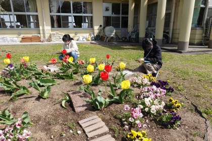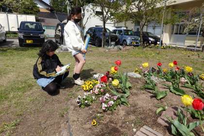 春の花を観察し、絵を描きました。花びらや葉の重なりに気を付けながらじっくり観察していました。