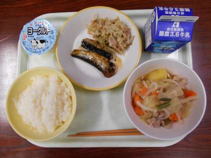 ごはん  牛乳  いわしの梅煮  はりはりソテー  肉じゃが ヨーグルト