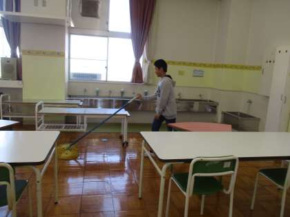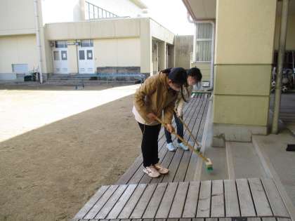 みんなが使う場所をきれいにしようと、掃除に励んでいました。