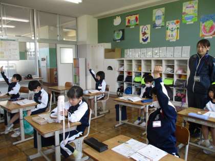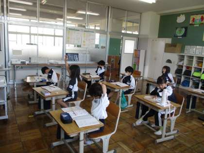 2年生は、足し算の筆算の学習をしていました。たす数とたされる数が反対になっても答えは同じになるということを学びました。