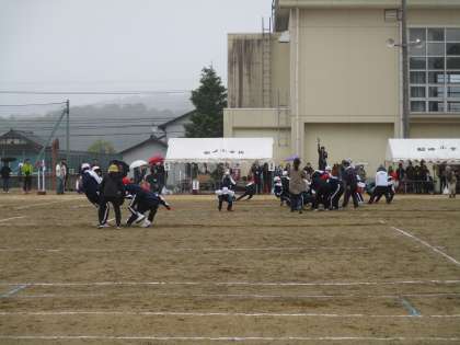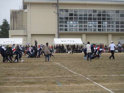 4・5・6年生は、タイヤ引きを行いました。熱い戦いでした。