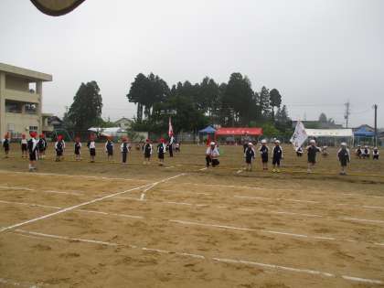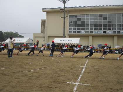 上学年と下学年に分かれて綱引きを行いました。とてもよい勝負でした。