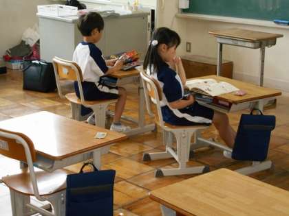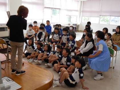 今日の船っ子タイムは「読書」です。子どもたちは、事前に知らせてある2つのお話から選んで読み聞かせに参加するか、自分で選んだ本を教室で読むかを自分で決めて活動しています。