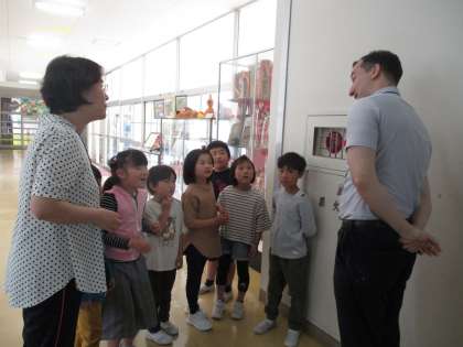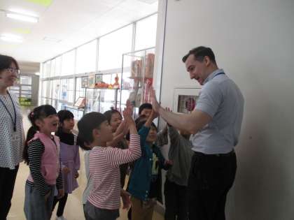 ふれあいタイムの時間に、1年生がALTの先生にインタビューをしました。