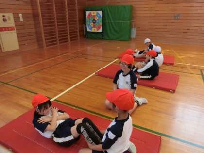 今日は昨年度の記録を確認し、柔軟性を高める運動や上体起こしの運動に取り組みました。