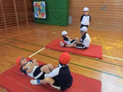 体力テストに向けて、心と体の準備を始めた子どもたち。